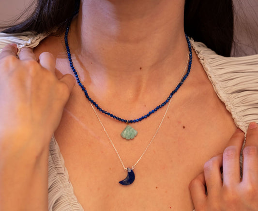 Lapis Lazuli Necklace with Amazonite Shell Charm - BALANCE AND WISDOM